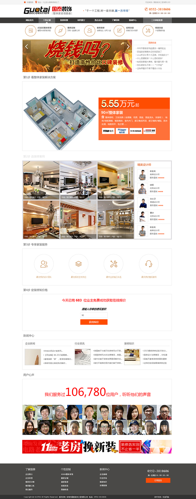 國(guó)泰裝飾入駐蚌埠后,在蚌埠裝飾市場(chǎng)上首次推出“38800整體家裝”服務(wù),是家裝行業(yè)新概念的領(lǐng)跑者與實(shí)踐者,為消費(fèi)者和蚌埠裝飾行業(yè)帶來了實(shí)惠與風(fēng)尚。