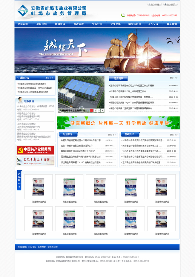 多年來,蚌埠鹽業(yè)認(rèn)真貫徹落實(shí)國家《食鹽專營辦法》、《食鹽加碘消除碘缺乏危害管理?xiàng)l例》,始終以食鹽市場(chǎng)安全穩(wěn)定為天職,忠實(shí)履職,恪盡職守。一方面對(duì)全市鹽業(yè)市場(chǎng)進(jìn)行鹽政監(jiān)管,嚴(yán)厲打擊鹽業(yè)違法犯罪,全力維護(hù)食鹽市場(chǎng)安全穩(wěn)定;另一方面負(fù)責(zé)組織開展食鹽專營,致力為消費(fèi)者提供安全、優(yōu)質(zhì)、放心的加碘食鹽,確保全市371萬人口的食鹽供應(yīng)。與此同時(shí),蚌埠鹽業(yè)主動(dòng)適應(yīng)市場(chǎng)需要,積極拓展非鹽經(jīng)營,在發(fā)展的道路上不斷深化改革,自主創(chuàng)新,產(chǎn)業(yè)結(jié)構(gòu)轉(zhuǎn)型邁出堅(jiān)實(shí)步伐,全區(qū)總資產(chǎn)已近8000萬元,現(xiàn)有經(jīng)營倉儲(chǔ)面積約1.5萬平米,在建倉庫1萬余平米。2014年實(shí)現(xiàn)銷售收入14762.69萬元,其中食鹽銷售4967.40萬元,非鹽銷售9795.20萬元、實(shí)現(xiàn)利稅1124.52萬元,經(jīng)濟(jì)社會(huì)效益居全省同行領(lǐng)先。先后榮獲全省鹽業(yè)系統(tǒng)先進(jìn)單位五連冠、安徽省勞動(dòng)保障誠信示范企業(yè)、安徽省衛(wèi)生先進(jìn)單位、檔案管理考核安徽省一級(jí)單位、蚌埠市A級(jí)納稅信用單位、蚌埠市第十四屆文明單位等多項(xiàng)榮譽(yù)稱號(hào)。